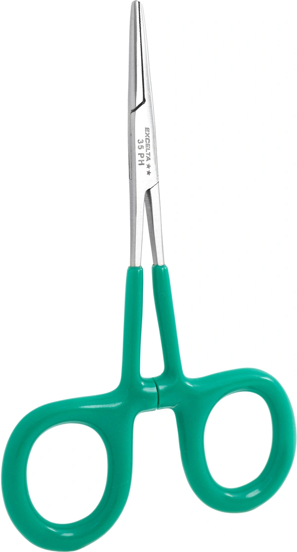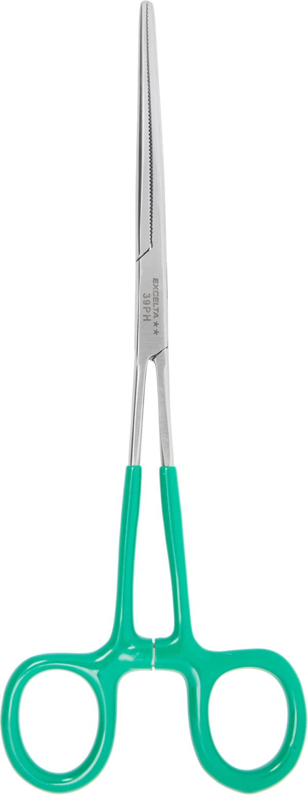 These Straight stainless steel (AISI 440) locking hemostats feature serrated jaws with vinyl-coated handles for comfort.